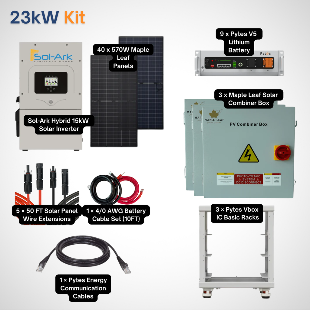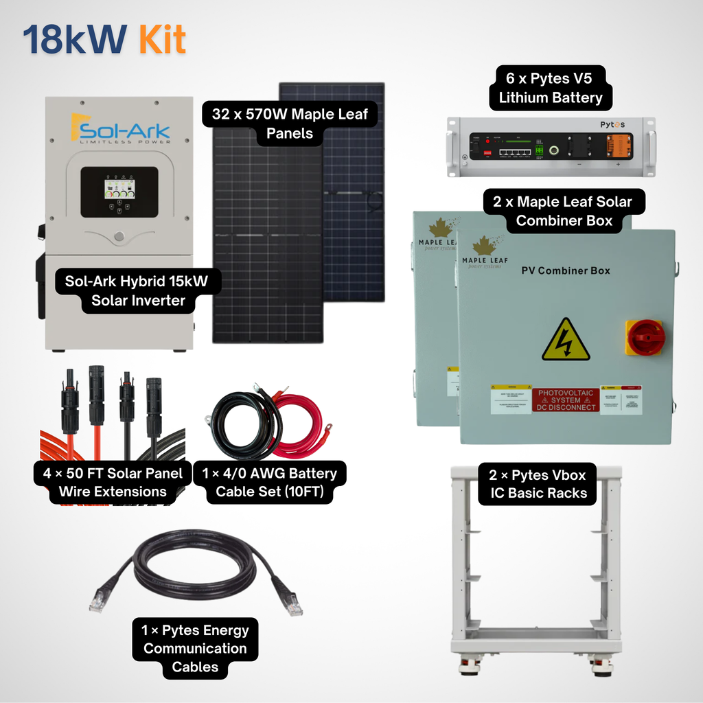 Sol-Ark 15K Solar Power Kit | Maple Leaf 570W Panels | 48V 5.12kWh Pytes V5 Battery | Solar Power Kit for Home, Cabin & Off-Grid/Hybrid