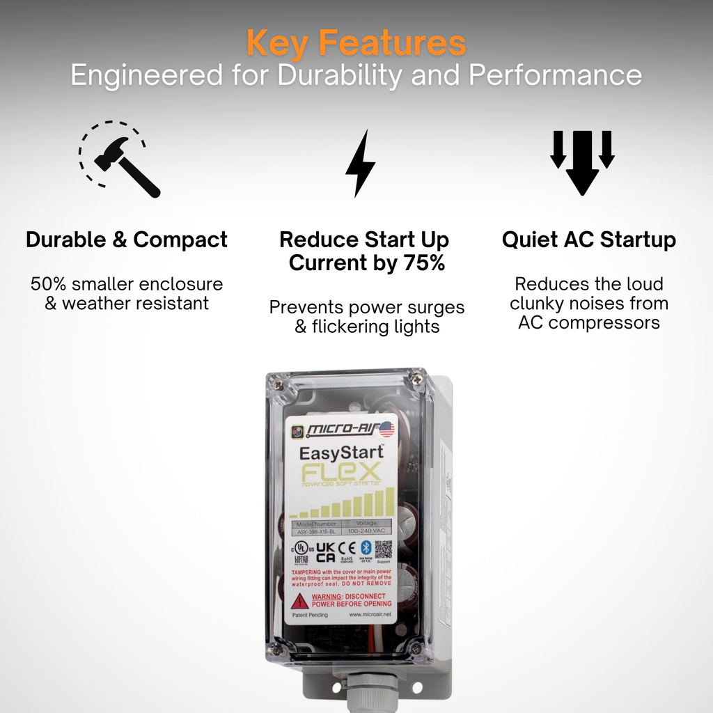 EasyStart™ Flex Home AC Soft Starter – Micro-Air Soft Start Kit for Air Conditioners & Heat Pumps | One-Size-Fits-All Up to 6 Tons | Generator, Inverter & Solar Power Compatible | Quiet Startup & Energy Efficient HVAC Solution
