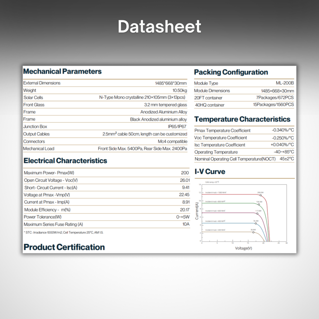 Maple Leaf 200W Bifacial Monocrystalline Solar Panel – High Efficiency, IP67, Tempered Glass | Premium Canadian-Engineered Monocrystalline Solar Panel With Bifacial Power Boost – Ideal for Residential, Commercial, and Off-Grid Applications