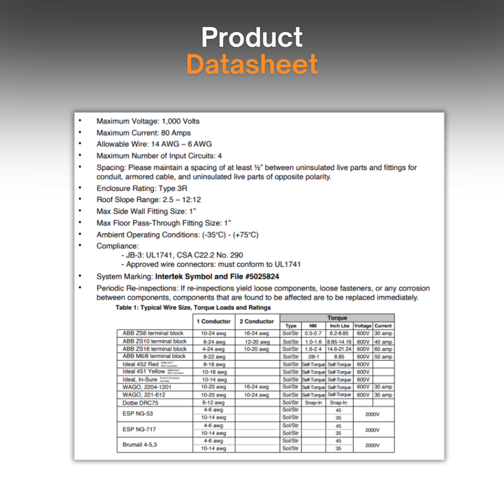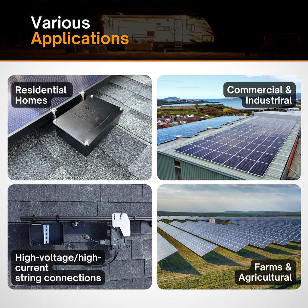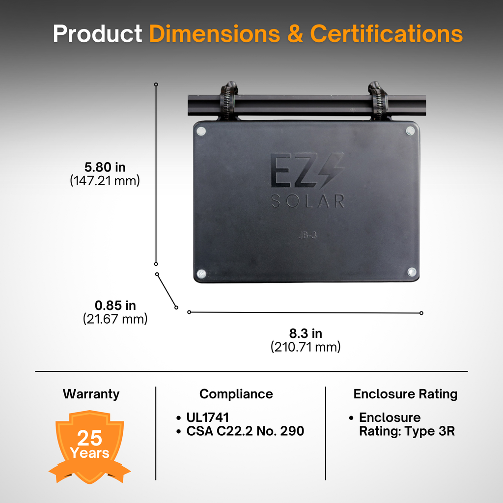 EZ Solar JB-3 Universal Rail/Panel Mount Solar Power Junction Box Kit | Water Resistant Rooftop Solar Junction Box for Rail-Mount Systems