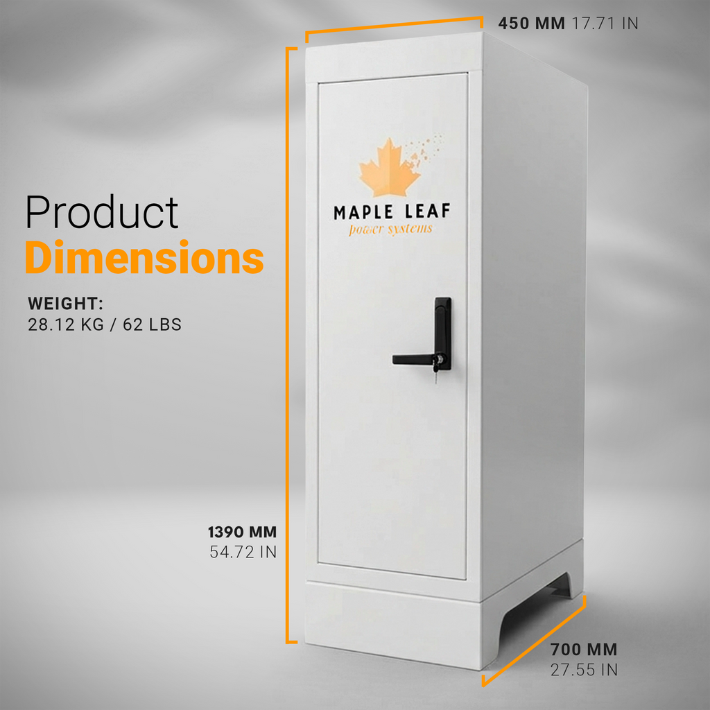 Maple Leaf Mountie - Safe Outdoor Battery Cabinet | Insulated Waterproof Steel Enclosure for Server Rack & Solar Power System Batteries | IP65 Rated Battery Power Outdoor Cabinet
