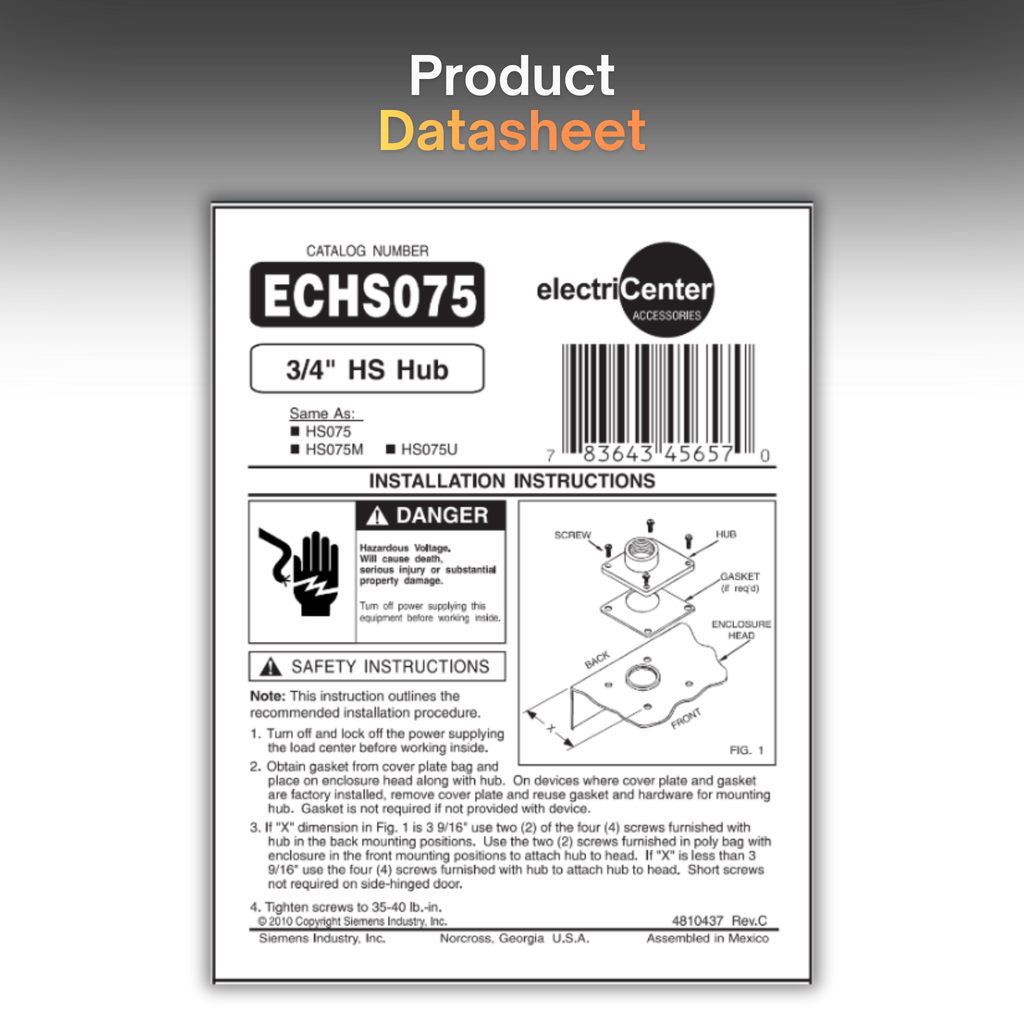 Siemens ECHS075 – 3/4-Inch HS Type Electrical Hub | Load Center Conduit Hub | Siemens Panel & Meter Socket Hub