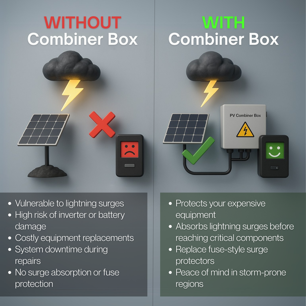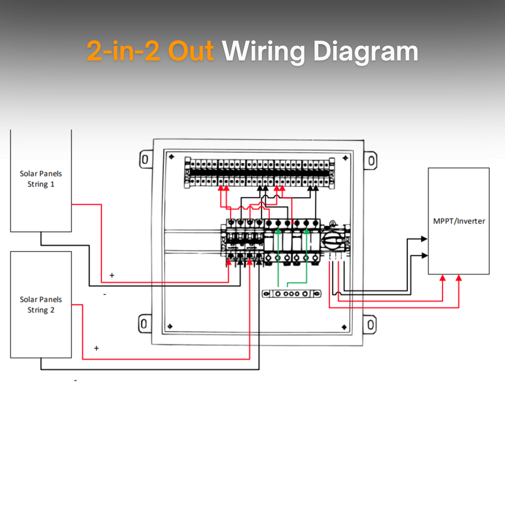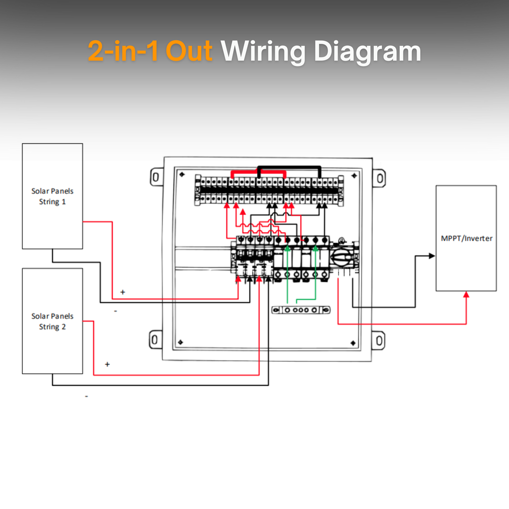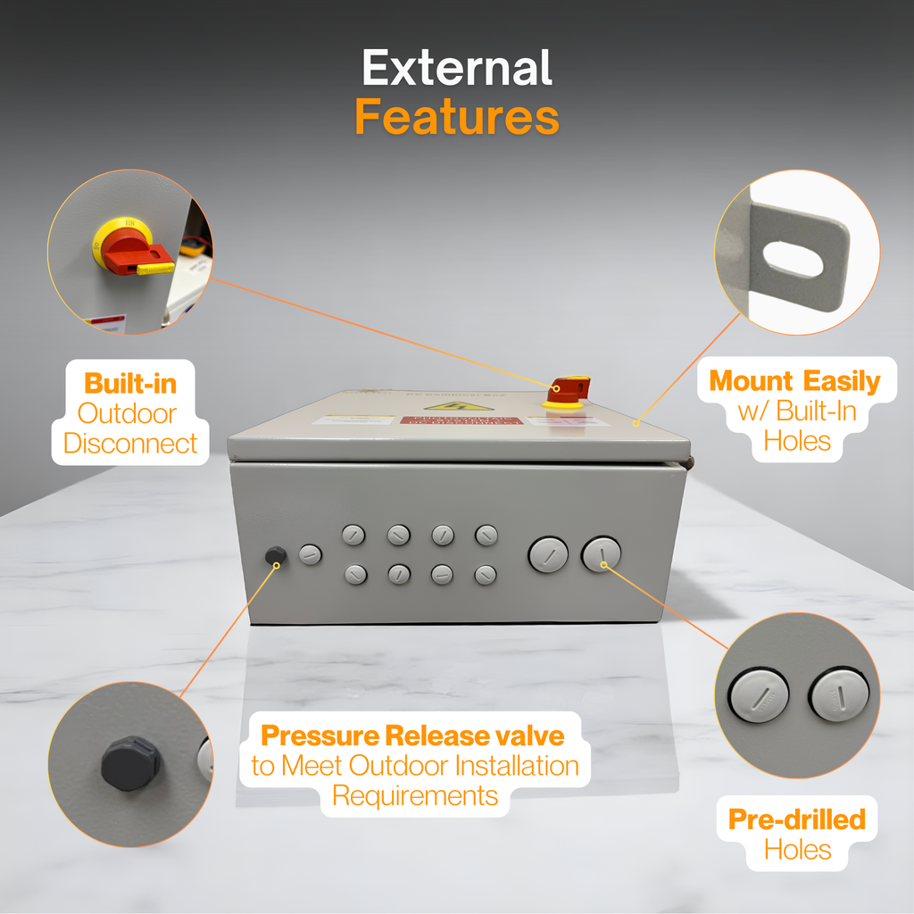 Maple Leaf Solar Combiner Box - 600 VDC Disconnect Box 2-In 2-Out | W/ Surge Protection | IP65 Waterproof & Lightning Arrester